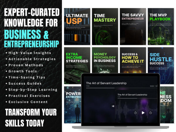 Unlock the secrets to business success with this 100+ Digital Business & Entrepreneurship Mega Pack. Perfect for aspiring entrepreneurs, side hustlers, small business owners, and creators, this digital learning bundle provides actionable strategies to grow your business, master productivity, and level up your entrepreneurial mindset.