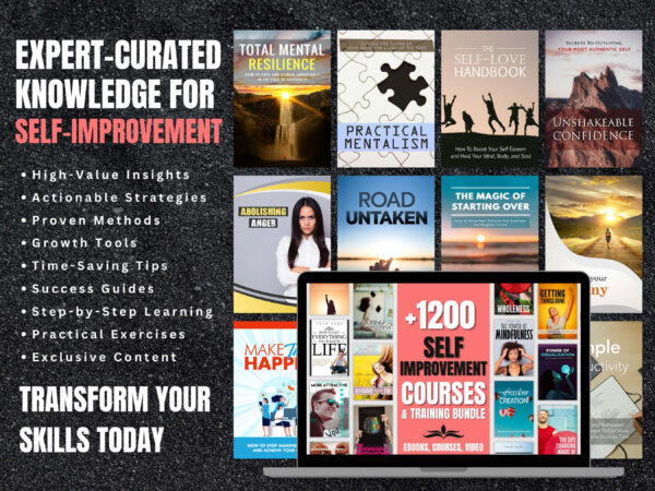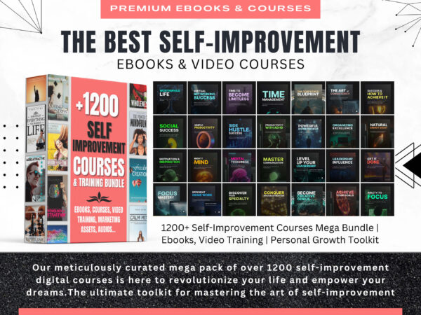 Transform your personal and professional growth with this exclusive Self-Improvement Mega Bundle, featuring 1200+ digital resources. Perfect for entrepreneurs, content creators, and anyone committed to learning, this bundle is your ultimate toolkit for achieving focus, productivity, confidence, and success.