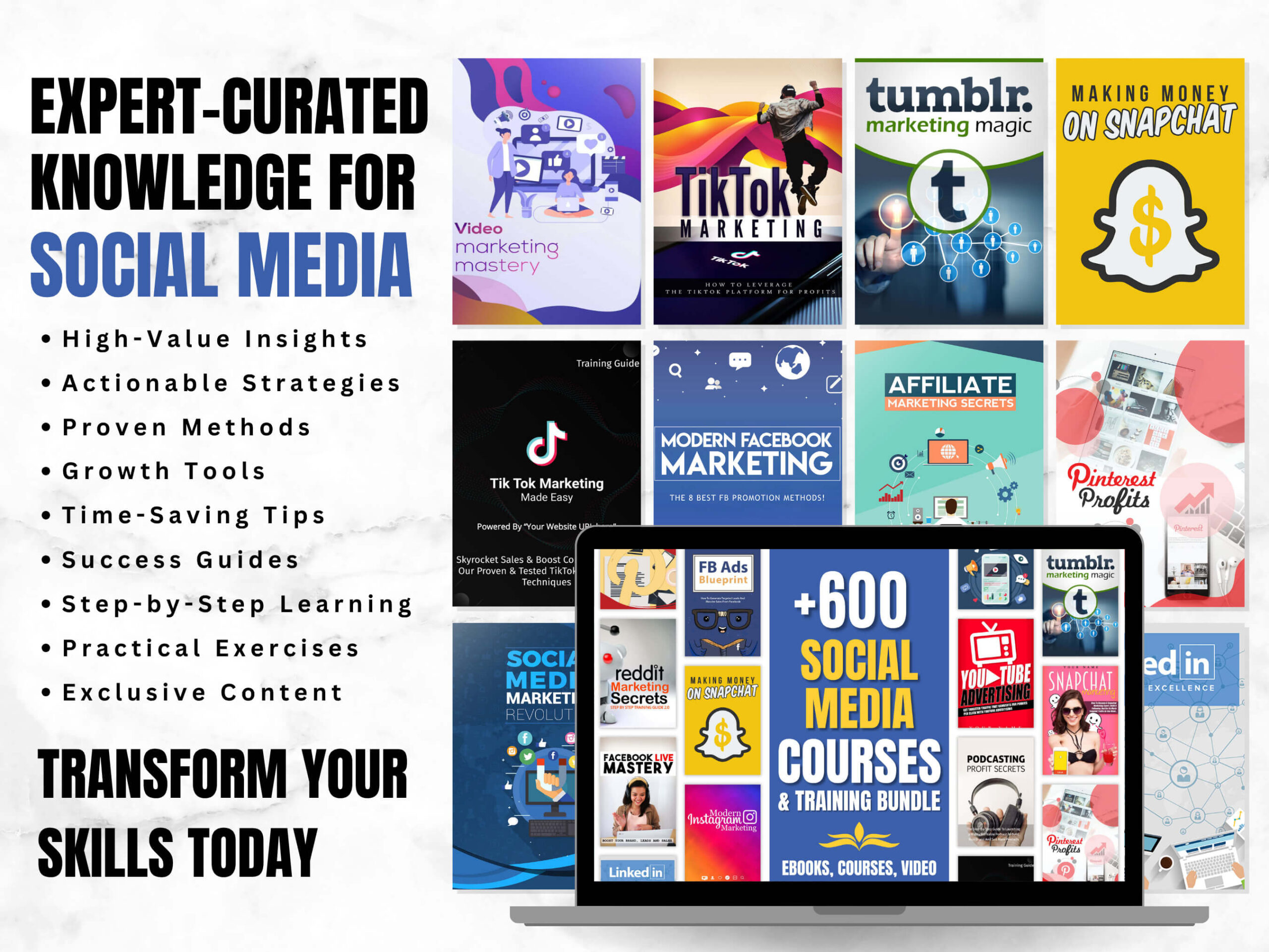 Take your social media skills to the next level with this comprehensive 600+ Social Media Marketing Bundle. Perfect for entrepreneurs, content creators, and small business owners, this digital learning pack equips you with the strategies, tools, and techniques you need to succeed online.