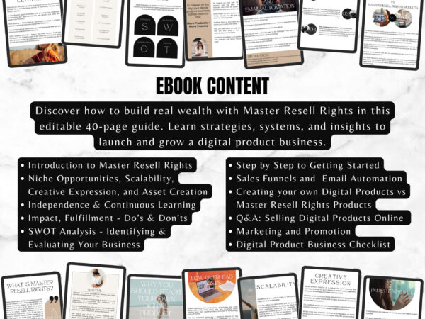 Turn digital products into streams of income — and sell this premium guide as your own. This editable, plug-and-play eBook teaches the mindset, strategy, and execution behind Master Resell Rights (MRR) — while giving you full PLR rights to resell it, rebrand it, or use it to grow your brand.