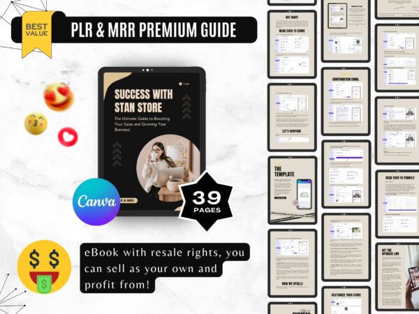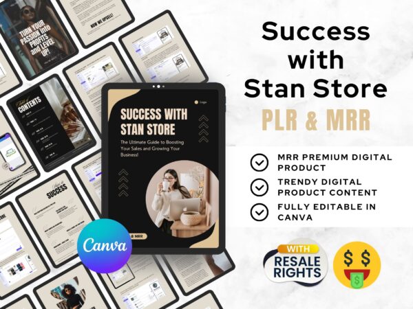 Are you ready to turn your Stan Store into a thriving sales machine? Introducing the MRR PLR eBook: Success With Stan Store Guide—a stunning, easy-to-use, and customizable guide that takes you step-by-step through building a high-converting Stan Store. Perfect for entrepreneurs, content creators, and online sellers, this guide is your ticket to skyrocketing profits while saving time and effort!