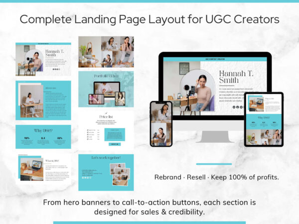 This premium Canva Website Template is not only a done-for-you landing page for UGC creators, influencers, and freelancers… it also comes with Master Resell Rights + Private Label Rights.